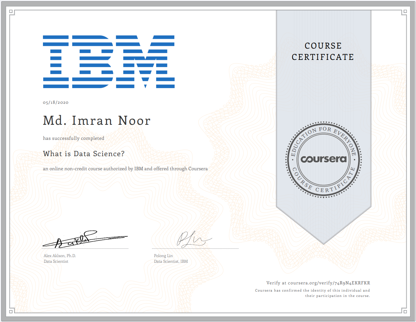 This course was offered by IBM on Coursera, taught by Rav Ahuja, Alex Aklson, and Joseph Santarcangelo, and I’ve achieved a 95% grade. This introductory course provides a comprehensive overview of data science, its significance in today’s data-driven world, and the roles and skills of data scientists. It’s designed for beginners, requiring no prior knowledge, and serves as the first step in IBM’s Data Science Professional Certificate.